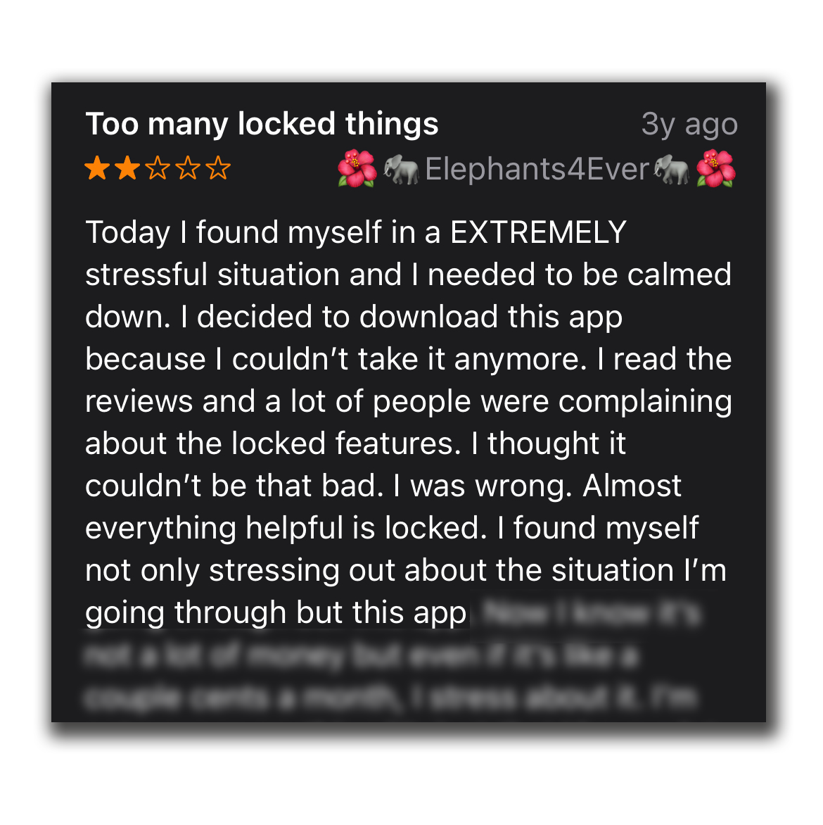 While reviews from those who can access the app are overwhelmingly positive, there is no shortfall of reviews that criticize the hefty price tag on Calm’s subscription service. I quickly found that a large number of Calm users, old and new, shared similar sentiments to my initial thoughts.